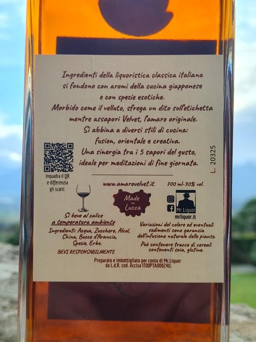 Amaro Velvet nasce da botaniche coltivate internamente, raccolte nel loro momento balsamico e infuse fresche entro 12 ore secondo il Metodo Mr.Liquor®