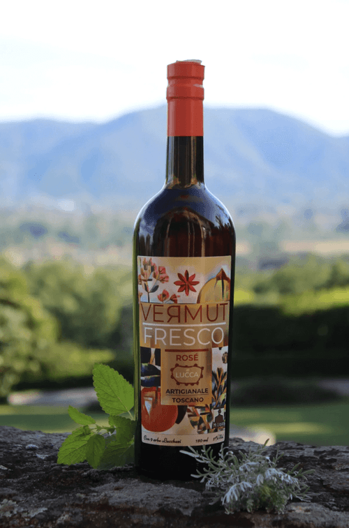 Il Vermut Fresco è perfetto per chi vuole offrire un aperitivo genuino e gentile, che provoca l’ appetito. Artigianale al primo assaggio per ingredienti e metodo. Il Rosè toscano si armonizza con le 9 infusioni di erbe fresche lucchesi. La sua particolarità sta infatti nell’infusione “a fresco” -senza essiccazione- delle erbe. Al bicchiere arrivano così profumi delicati ed eterei.